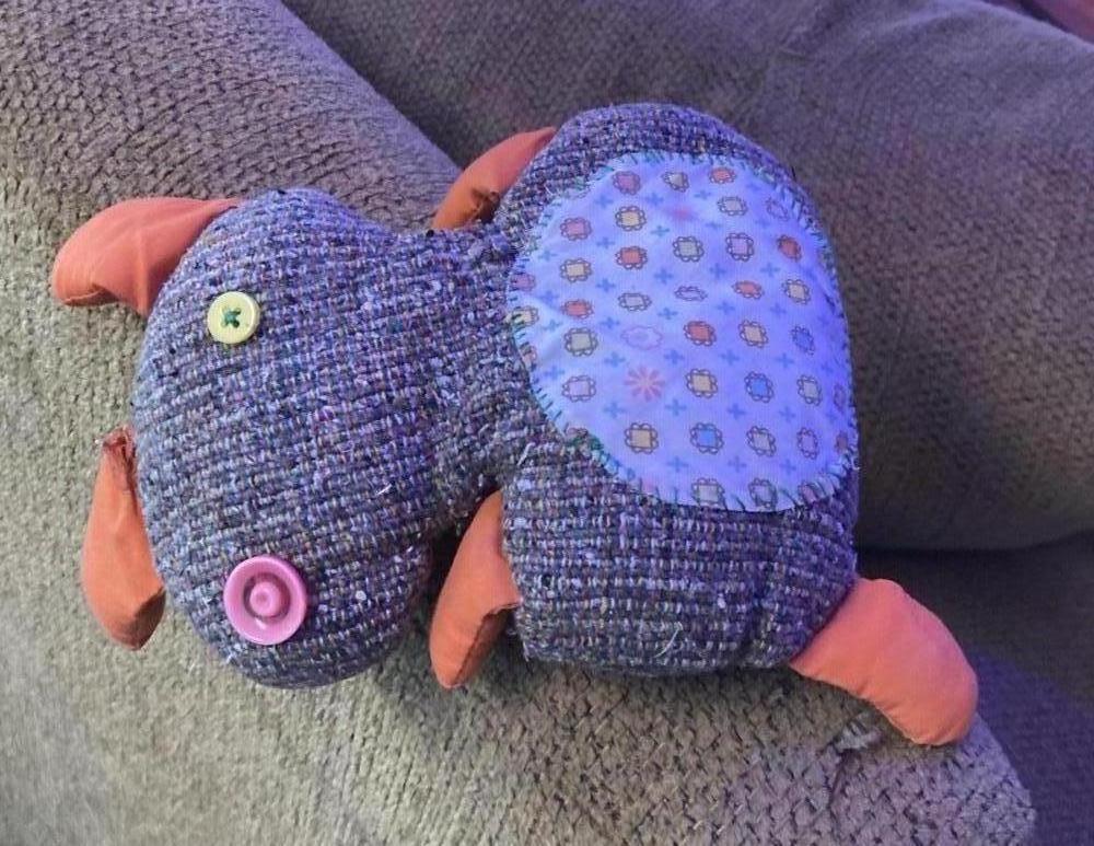 estates in the 1970s. The dragon's head and tail are orange from mosaic tiles that were used as a practical cladding to avoid having to repaint the playround periodically. It's colorful body of steel rings for children to climb through is well worn from happy running feet. Inside the dragon’s head is blue and slides lead down from either side to the sand pit below where a seahorse awaits excitedly.
