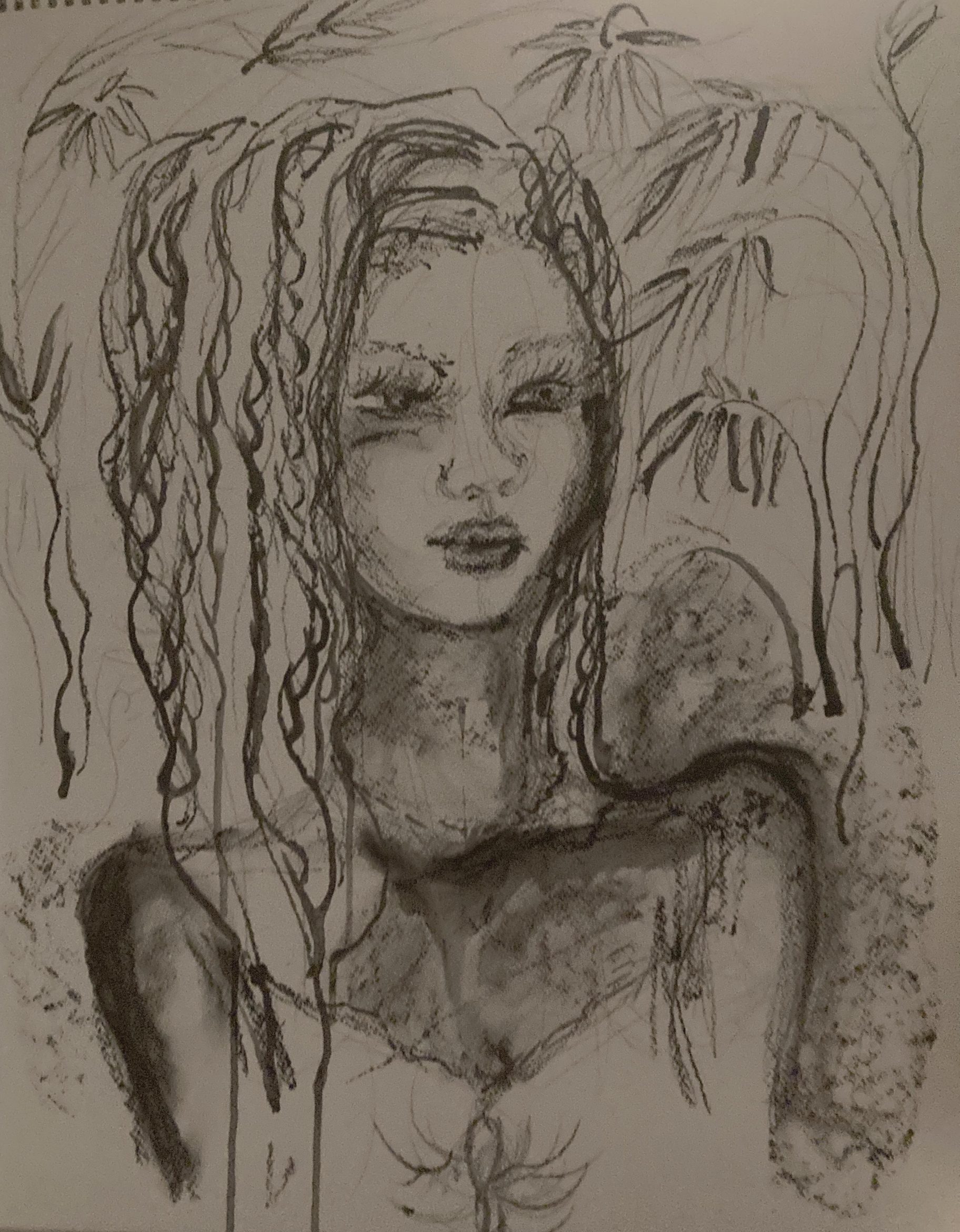 Originally a charcoal live sketch from TheARTI$T's Velvet Live Performance... Later it turned into a colorful mix of acrylic, watercolors, and ink inspired by Dionysus of Greek mythology and the soul’s inner journey. It’s infused with symbols of growth, vitality, and the abundance of nature’s bounties. A reminder of our interconnectedness and a celebration of a flourishing life thriving with a hope for the inner self to evolve, embrace joy and transformation.