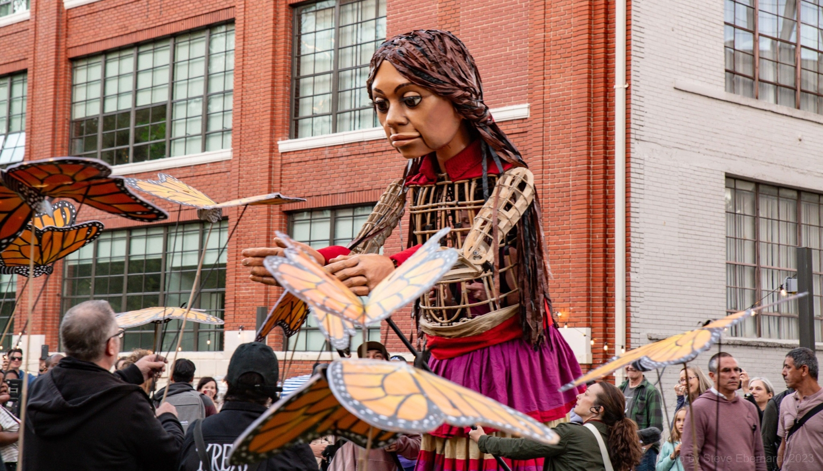 My love for puppetry took flight in 2023 as one of the 100 butterfly puppeteers walking with Little Amal along the Atlanta Beltline with the KREWE of the Grateful Gluttons led by Chantelle Rytter. It made me so happy to see the smiles of little ones as we flew butterflies around them in awe.
