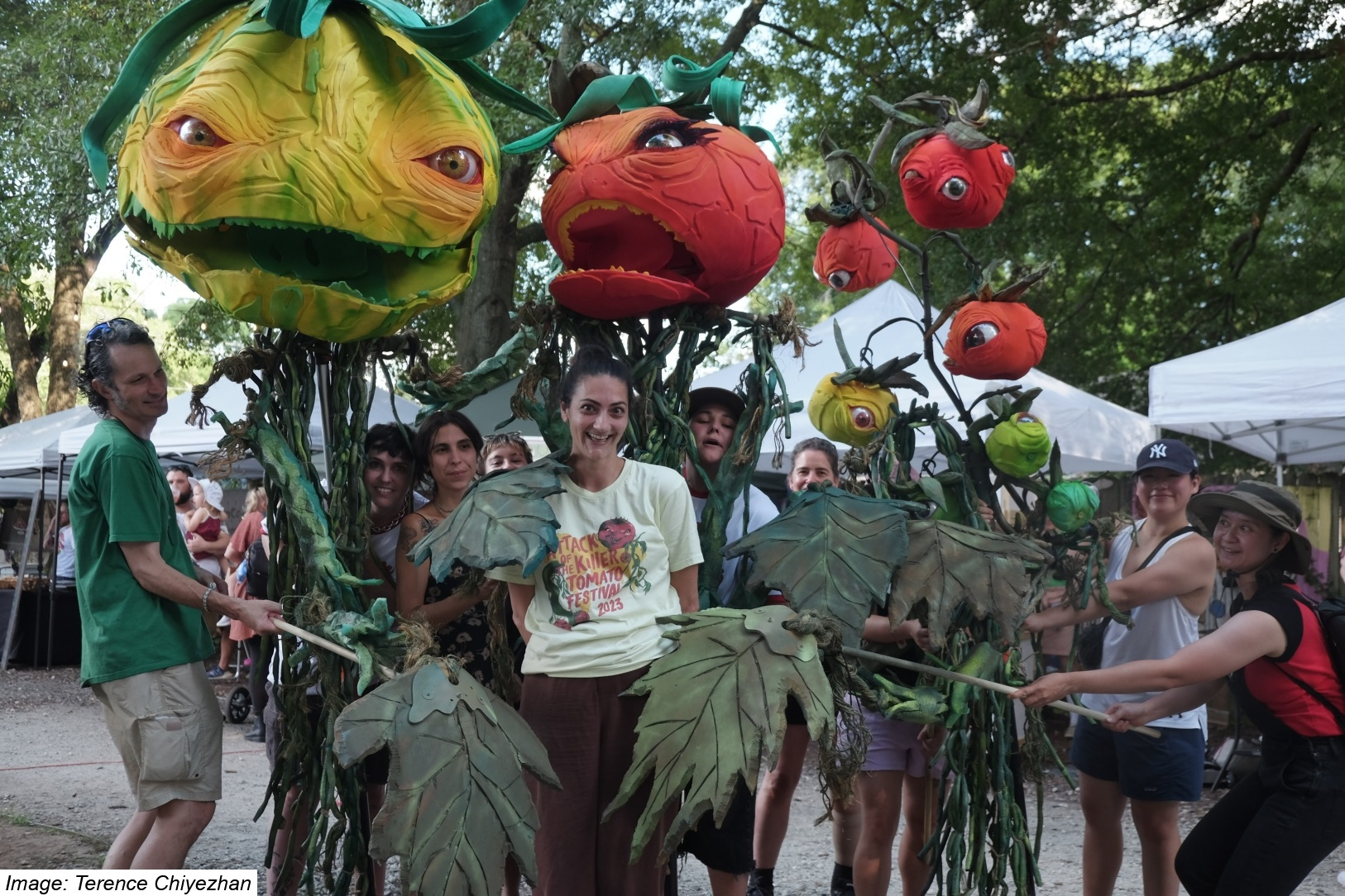 Another super fun experience was helping puppeteer Julia Hill's Giant Killer Tomato Puppets at their debut at the Heirloom Tomatoes Are Killer! event put on by Slow Food ATL & Georgia Organics.